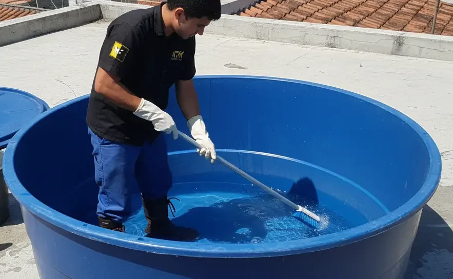 O tempo necessário depende do tamanho da caixa d’água ou reservatório, mas em média, o processo completo leva de 2 a 4 horas.